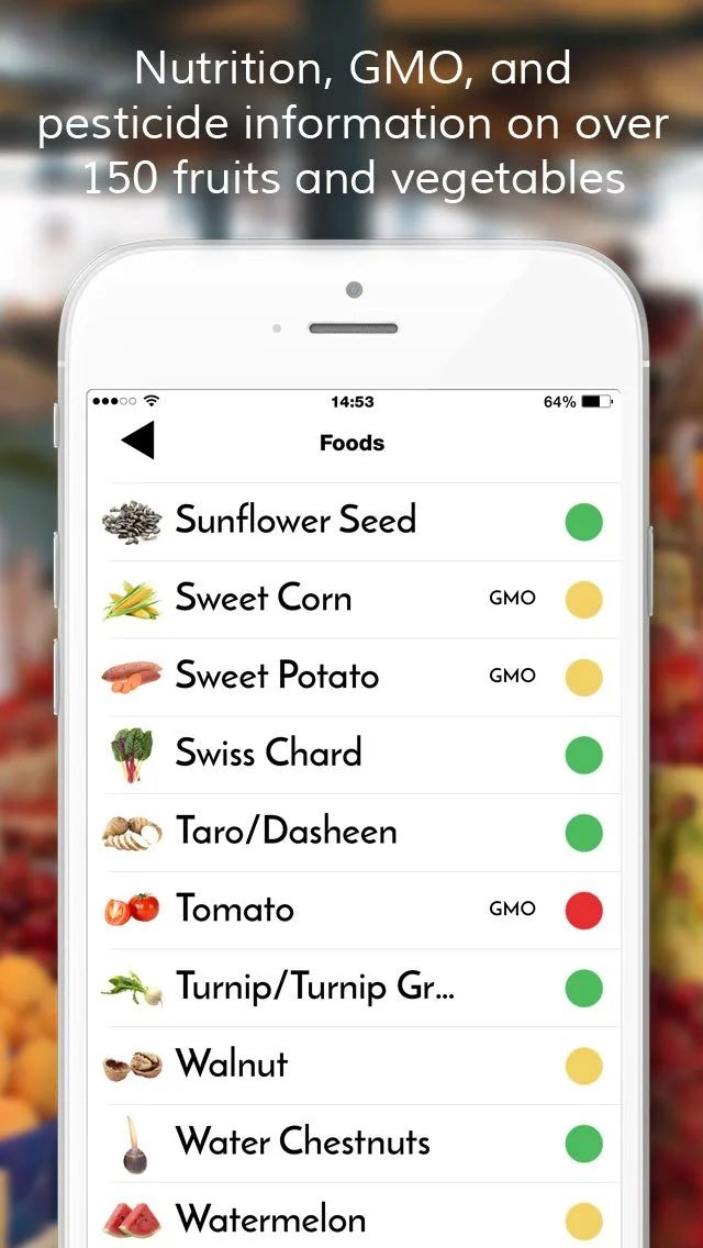 Guiding people to make healthy choices while grocery shopping by providing a quick-to-use reference guide on what foods to buy organic.