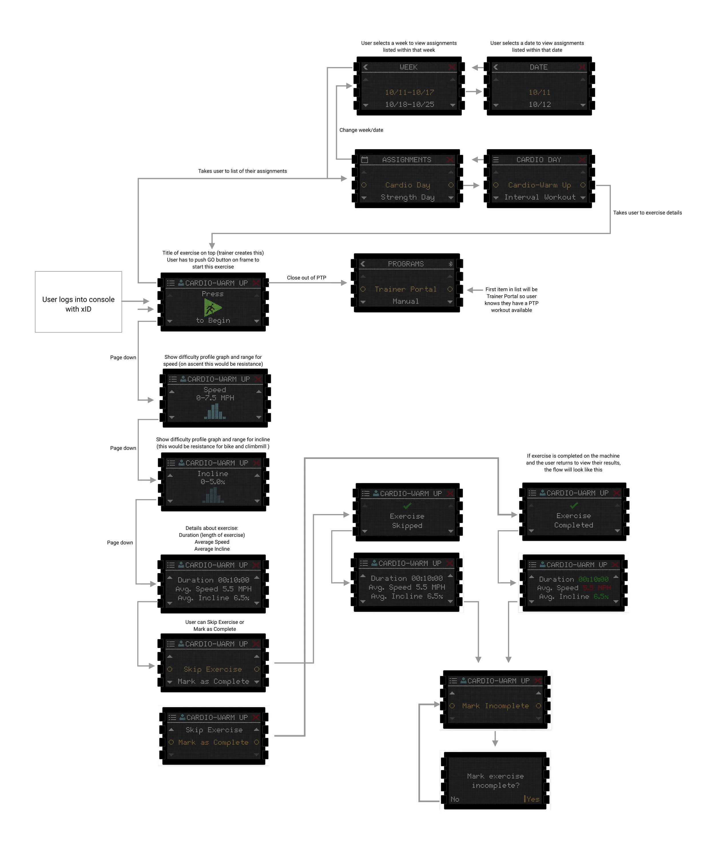 All user flows need to be accommodated for: everything from machine installation and setup to maintenance/backend flows to gym staff checking usage and troubleshooting to the workout experience for gym clients.